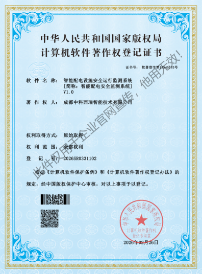 软件著作权 智能配电设施安全运行监测系统[简称:智能配电安全监测系统]V1.0