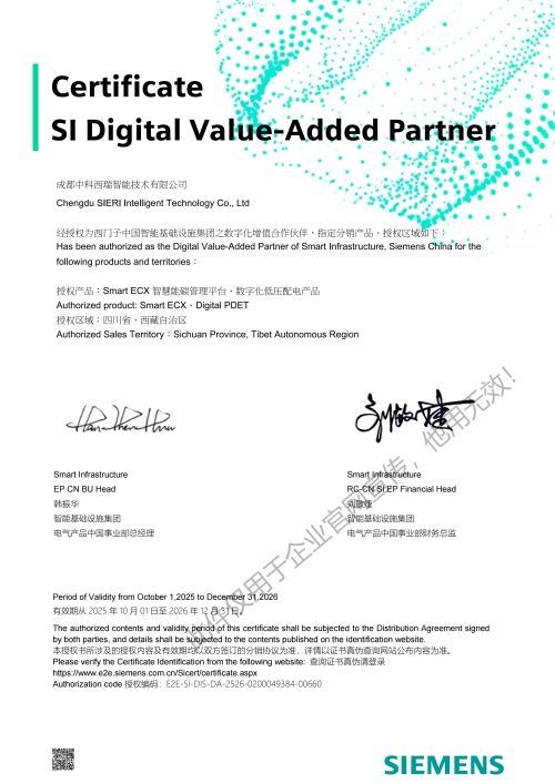 西门子Smart ECX智慧能碳管理平台培训合格证明