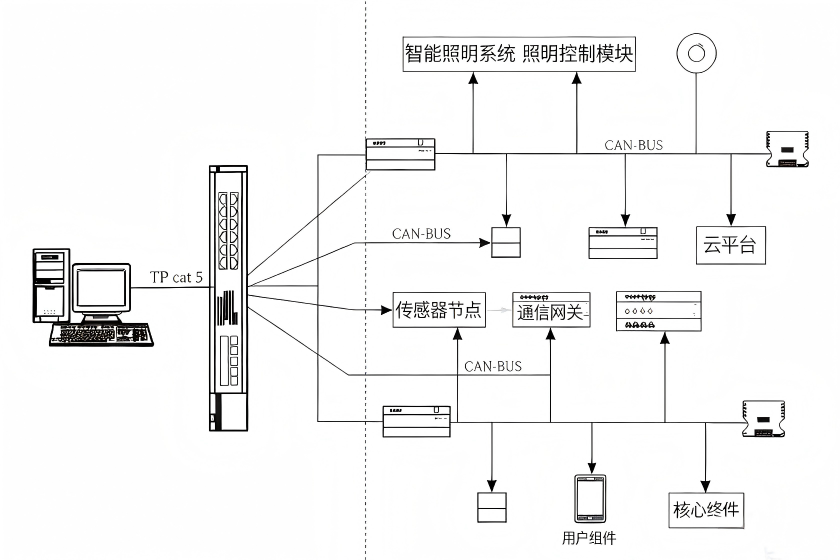 智能照明系统是融合物联网、传感器与智能控制技术的照明解决方案,由智能灯具、传感/控制模块、通信网络、中控/云端平台组成,通过“感知-决策-执行”逻辑,替代传统人工控制,实现照明设备的精细化、智能化管理。